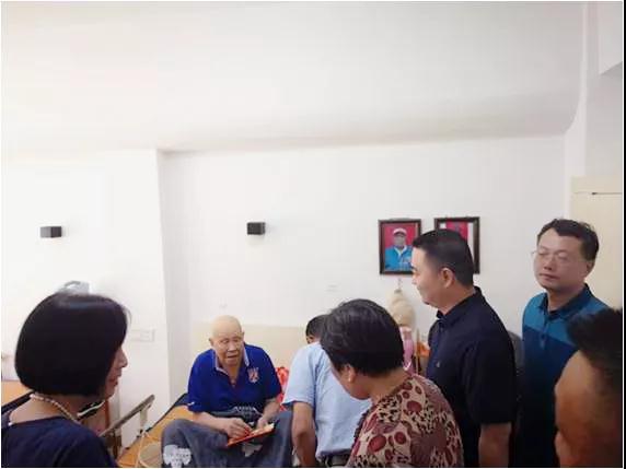 2019年9月3日上午,在市民政局劉家梁副局長(zhǎng)一行的帶領(lǐng)下,由民革湘潭市委、湘潭市慈善總會(huì)、湖南華銀酒店管理有限公司等聯(lián)合來(lái)我中心——福利社區(qū)銀海倆寶貝長(zhǎng)者之家慰問抗戰(zhàn)老兵101歲的李邵杰爺爺,并送上熱切的關(guān)懷和慰問金等物品。