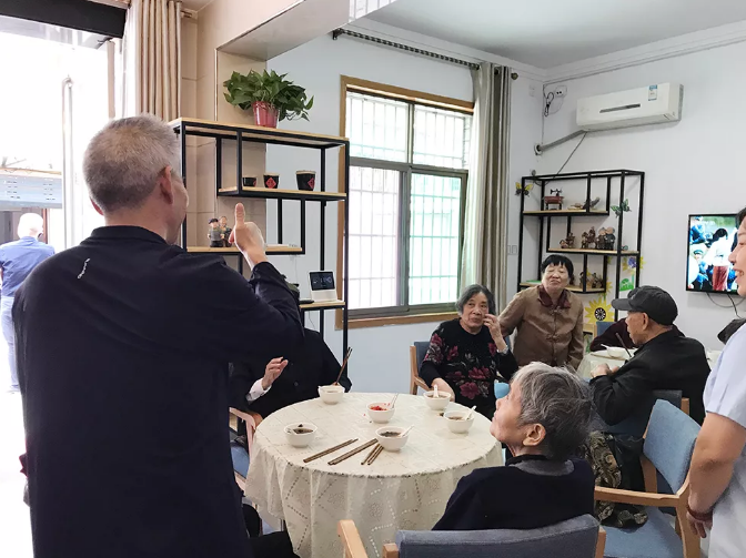 王部長(zhǎng)聽(tīng)完介紹,正值長(zhǎng)者們?cè)诖髲d等待就餐,便和長(zhǎng)者們親密地聊了起來(lái),沒(méi)有任何隔閡。