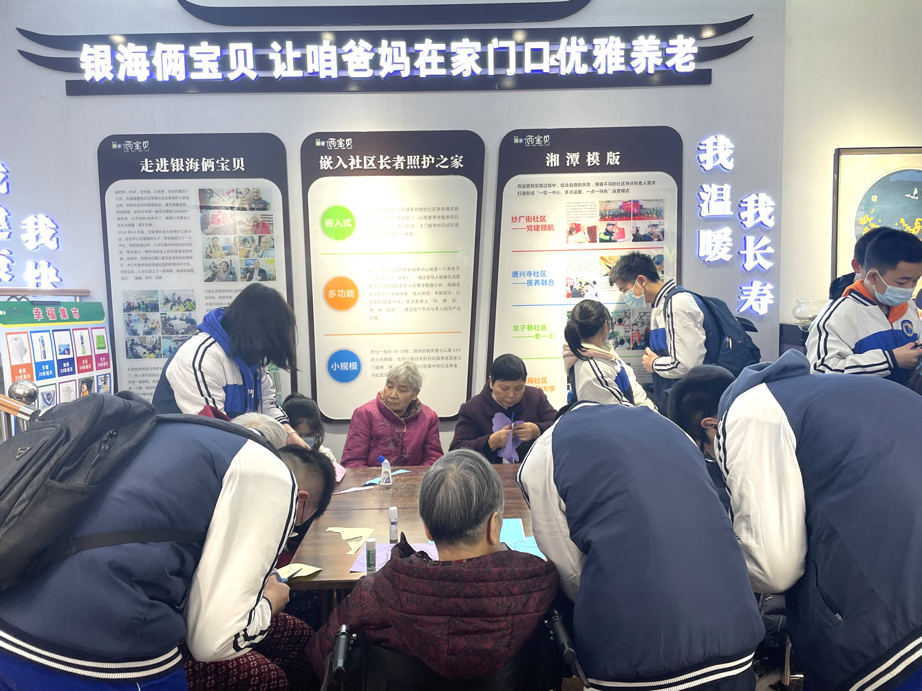 奉獻(xiàn)愛心,收獲希望。在3月5日這個(gè)特殊而又有紀(jì)念意義的日子里,湘潭市湘鋼一中初三級(jí)1907班50余名學(xué)生志愿者來(lái)到銀海倆寶貝窯灣康養(yǎng)中心內(nèi),為院內(nèi)的爺爺奶奶們送去了牛奶、水果、蛋糕等物品以及滿滿的祝福!