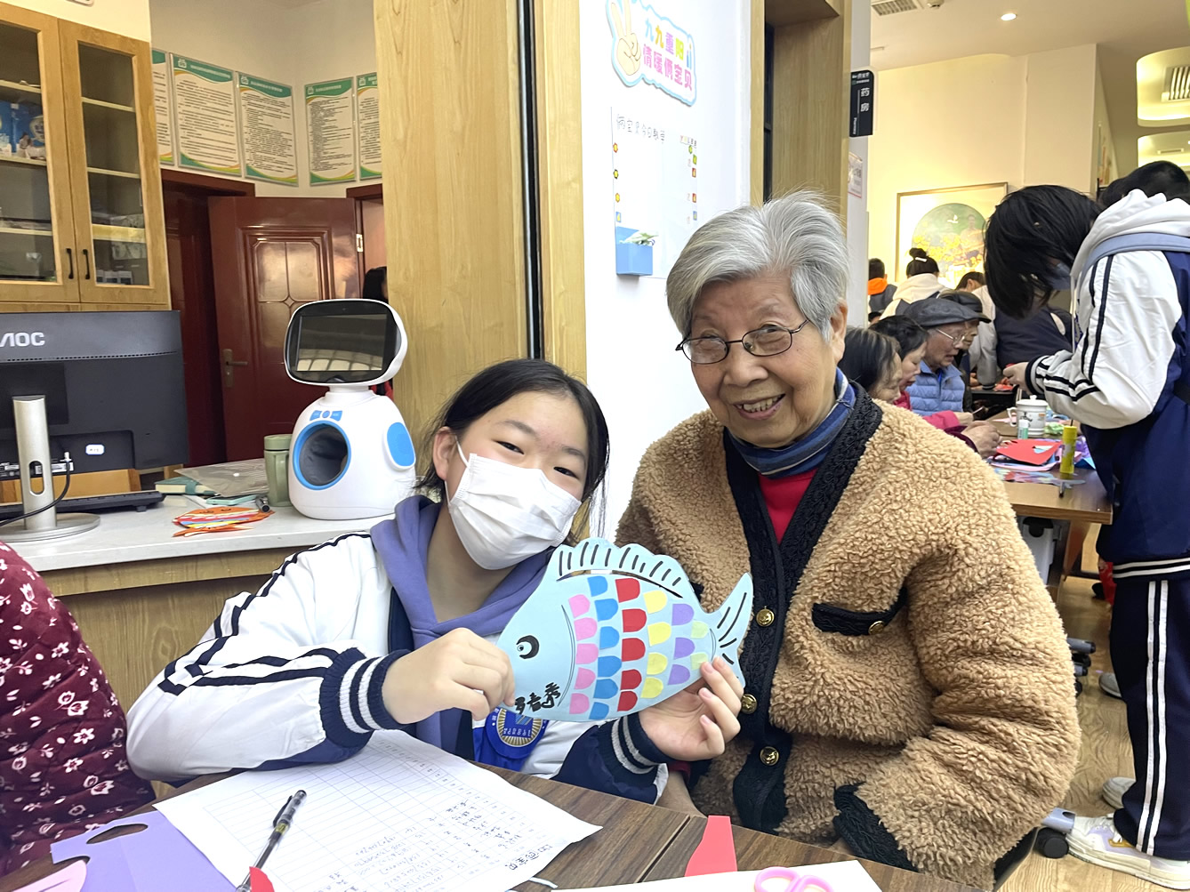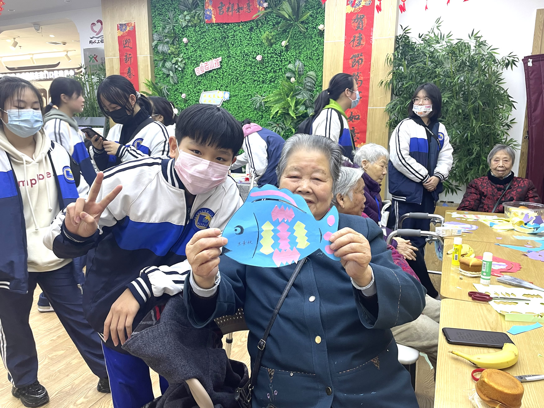 “爺爺奶奶們好!”還未瞧見人一聲聲清脆響亮的問(wèn)好聲便已傳了進(jìn)來(lái),在老師及工作人員的組織下同學(xué)們有序進(jìn)入到院內(nèi)并配合做好疫情防控登記。不一會(huì)兒,同學(xué)們陸續(xù)找到爺爺奶奶進(jìn)行自我介紹,并以一對(duì)一的形式來(lái)協(xié)助他們完成今天的手工作品“年年有魚”。