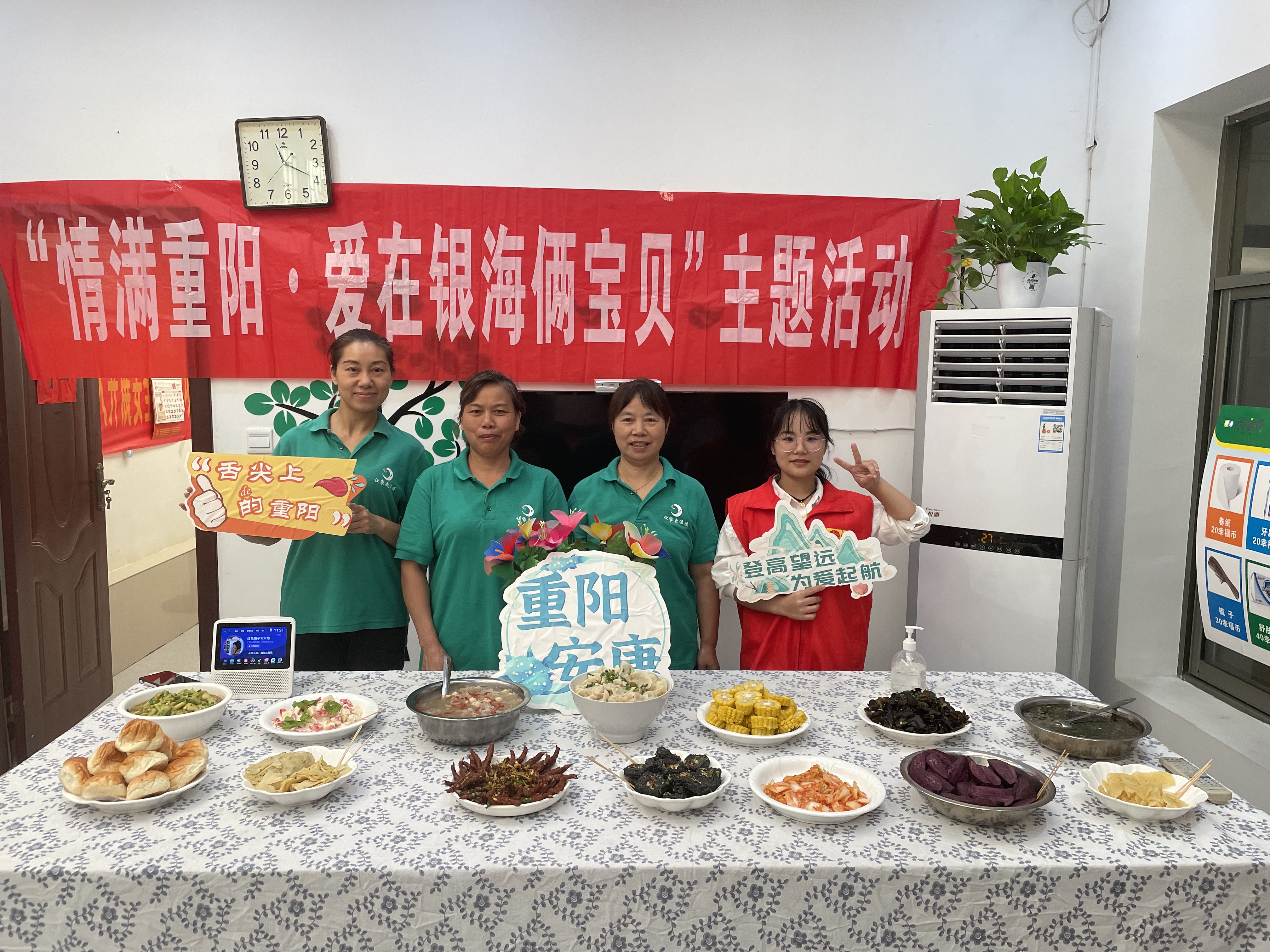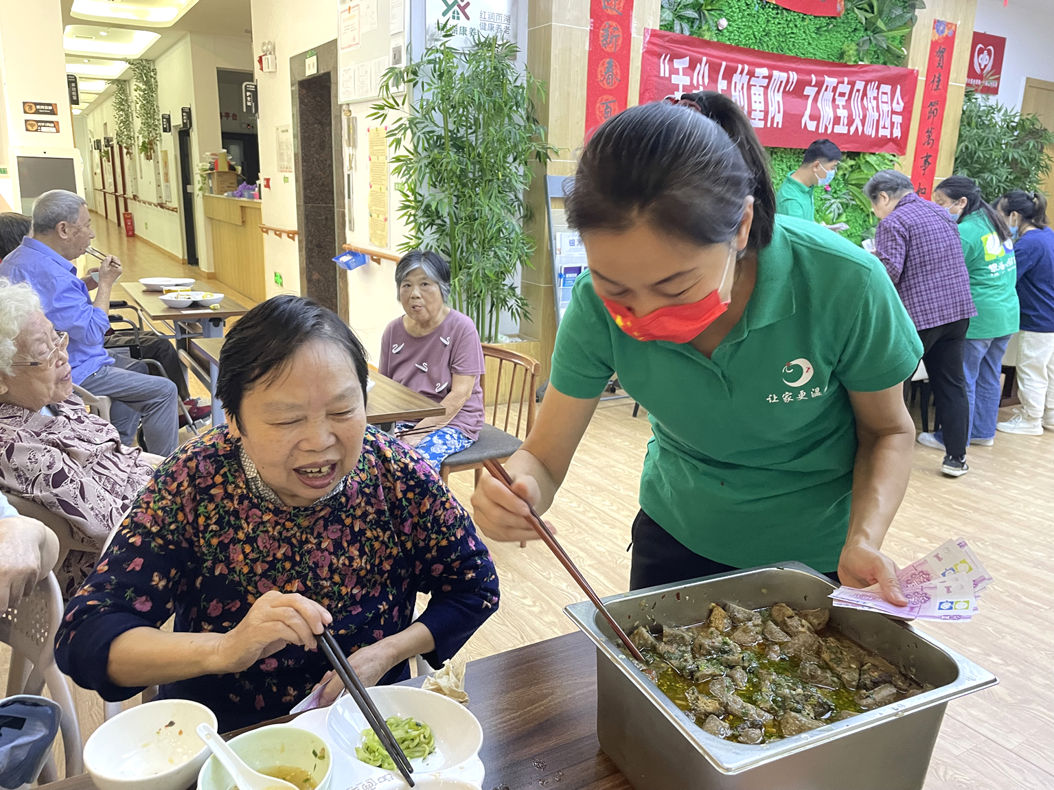 金秋送爽,丹桂飄香。一年一度的國慶、重陽一不小心撞了個(gè)滿懷!銀海倆寶貝為豐富入住長者的精神文化生活,特在近日舉辦了為善養(yǎng)老幸福銀行換購活動(dòng)和“舌尖上的重陽”美食園游會(huì)活動(dòng)。