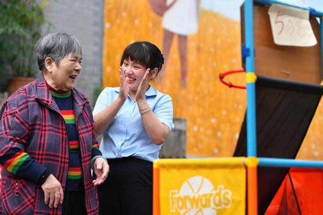 每天的活動(dòng)課是爺爺奶奶們最喜歡的。體驗(yàn)音樂(lè)療法中的音樂(lè)照顧課程,感受SET紅繩康復(fù)訓(xùn)練,體驗(yàn)豐富多彩的趣味游戲,挑戰(zhàn)不同形式的學(xué)習(xí)題目……活潑開(kāi)朗愛(ài)笑的劉夢(mèng),每天讓這一方院落充滿生機(jī),她積極探索各類適宜老人的活動(dòng),并勇于嘗試,和團(tuán)隊(duì)一起根據(jù)老人的身心情況、興趣特征等加以改進(jìn),不斷收獲老人好評(píng)。